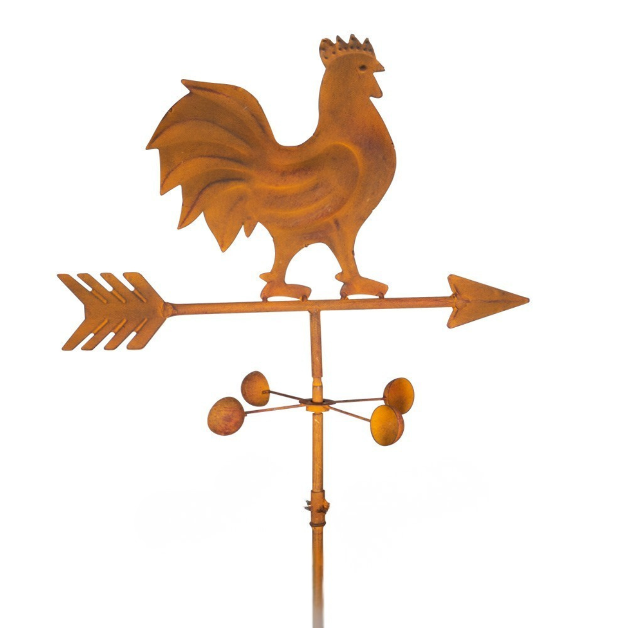Der Gartenstecker EDELROST WETTERHAHN besteht aus aufwändig gearbeitetem 3D- Relief Stahlblech und wurde in einem kontrollierten Verfahren künstlich gealtert. Dieser so entstandene Edelrost ist beabsichtigt und gibt dem Objekt ein nostalgisch, romantisches Aussehen. Die Unregelmäßigkeiten in der Oberfläche sind gewollt und werden sich mit der Zeit noch verändern. Der handwerklich, aufwendig gefertigte Artikel bringt Bewegung in Ihren Garten, denn schon bei leichtem Wind dreht sich der Hahn in den Wind und zeigt dann die Windrichtung an. Das Windrad rotiert durch ein hochwertiges Kugellager und kann dadurch die Windstärke sichtbar machen.