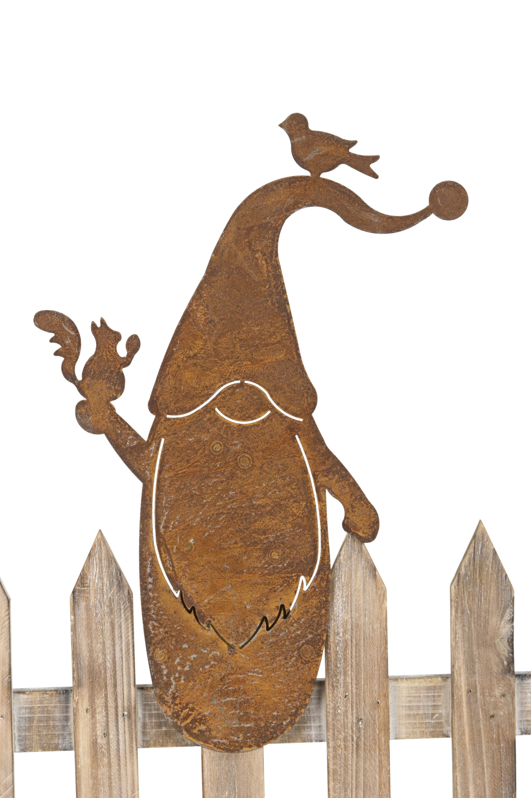 Metall Weihnacht Zaunfigur Wichtel – Zaunhocker Gnom – Gartendeko Nisse in Edelrostoptik 33cm