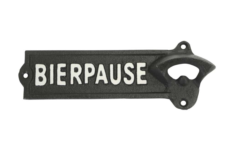 Wandflaschenöffner Bierpause zum Anbringen an Wand, Haus, Flur,… komplett aus Gusseisen
