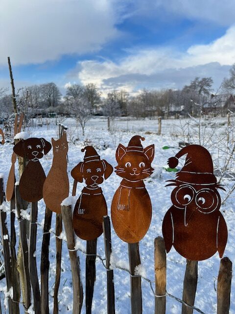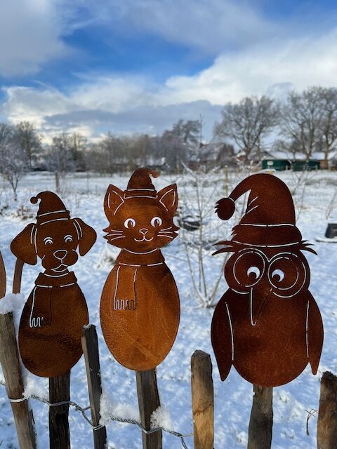 Diese weihnachtlichen Metall Zaunfiguren Weihnachten sind ein Blickfang für jeden Gartenfreund und ein MUST HAVE für alle Gartenzaunbesitzer! Zur Auswahl Schneemann, Weihnachtsmann, Wintereule, Weihnachtselch