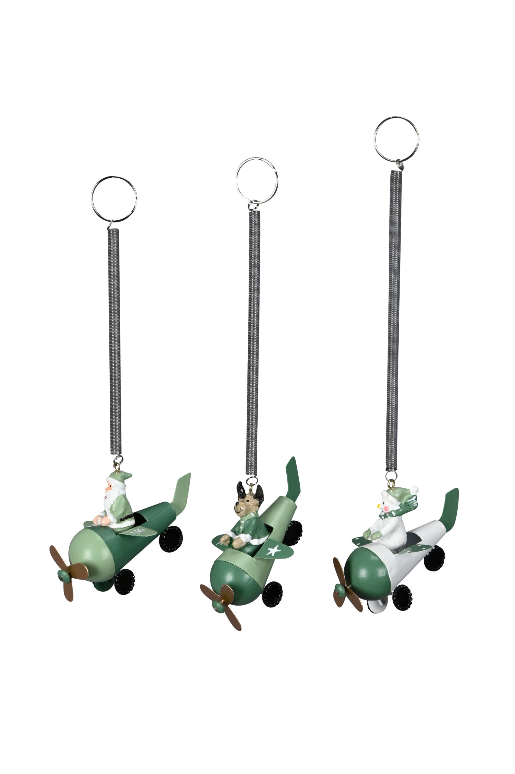 Weihnachtshänger Flugzeug an Feder – Weihnachtsfiguren Elch, Weihnachtsmann, Schneemann mit Sprungfeder zum Aufhängen
