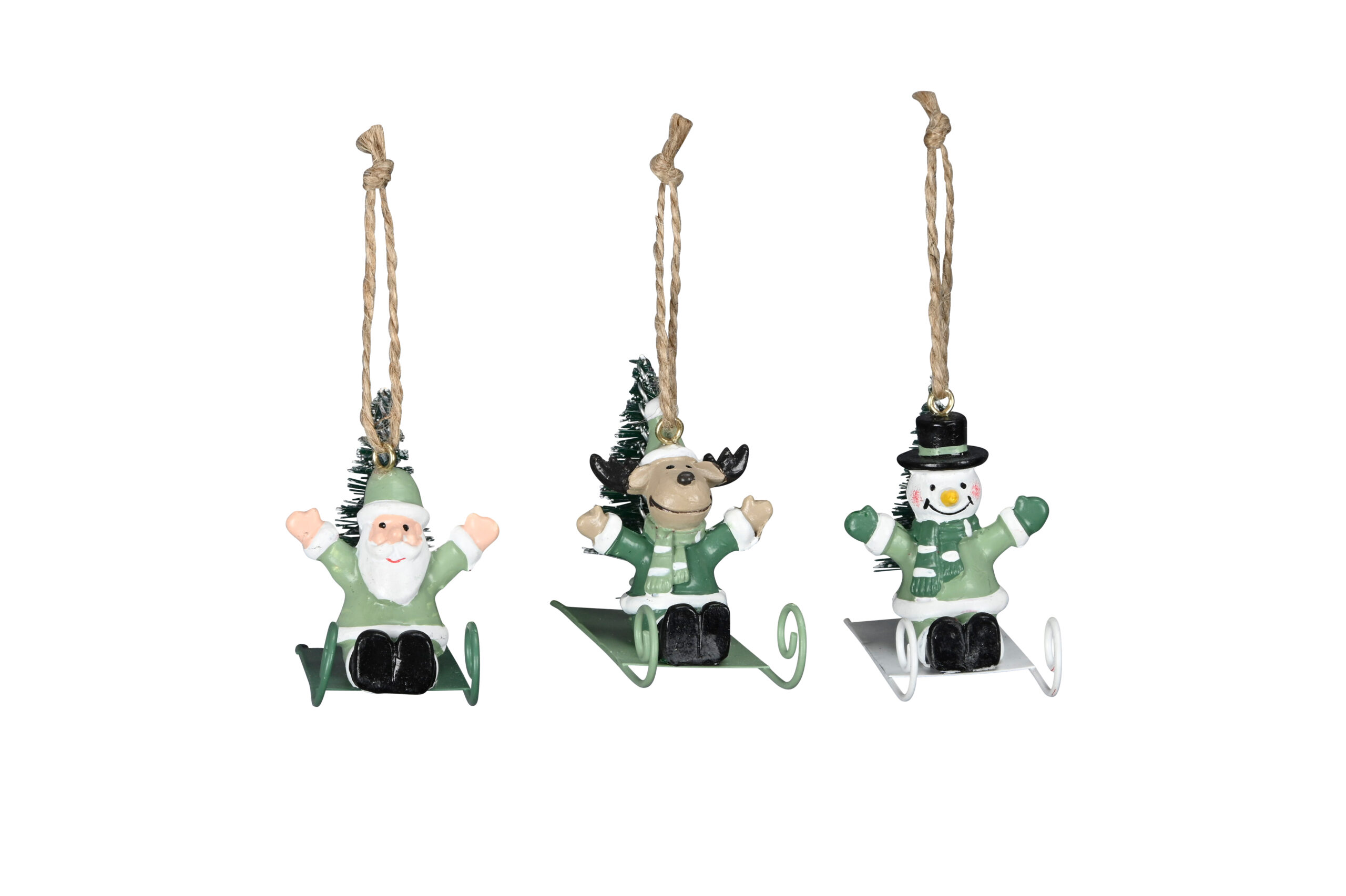 Weihnachtshänger Weihnachtsfiguren auf Schlitten – Elch, Weihnachtsmann, Schneemann – Rodelspaß zum Aufhängen oder Stellen